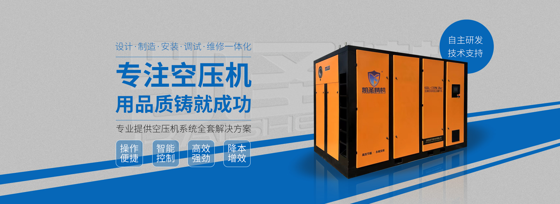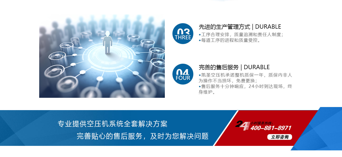 合肥凱圣節(jié)能科技有限公司是從事永磁變頻螺桿壓縮機系統的設計、制造、安裝、調試、維修與一體的公司。 在多年的螺桿空壓機研發(fā)與推廣歷程里,凱圣聚集和培養了大量壓縮機技術設計和管理人員,迅速發(fā)展成為集研究、生產、銷售、服務等環(huán)節(jié)為一體、嚴格按照標準執(zhí)行的企業,公司成立開始,即以滿足客戶的實際需求為己任,大力開拓國內外節(jié)能型空壓機市場,并始終保持創新精神,全力研發(fā)更為節(jié)能的螺桿式空壓機,努力站在空壓機節(jié)能領域的排頭位置。 應用范圍:公司產品廣泛應用于機械、輕工、紡織、食品、石油、化工、冶金、礦山、電力、城建、醫學研究和科研等各行業中,將為節(jié)約能源做出巨大貢獻。公司秉承“信譽至上,...